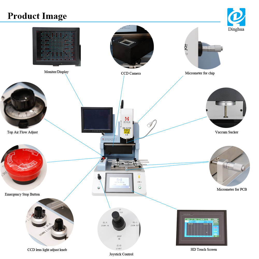 Dinghua DH-G730 CCD òptic Auto BGA Rework Station per a la reparació de placa base de telèfon mòbil Reparació de xip